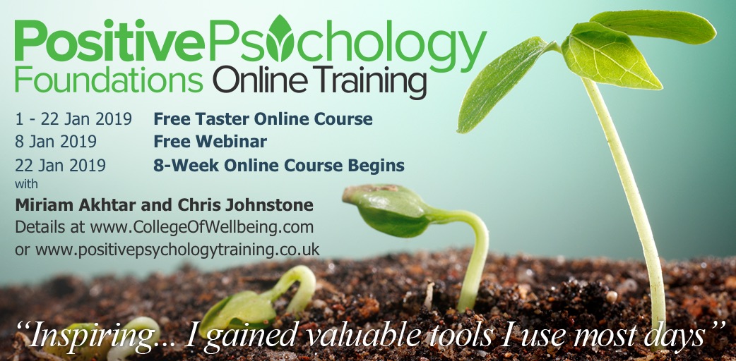 On January 8 2019 – Join us for a free webinar on Positive Psychology for Me, You and Us, which will give you a flavour of the course. If you can’t join us live, there will be a replay button so that you can tune in at a time to suit you.